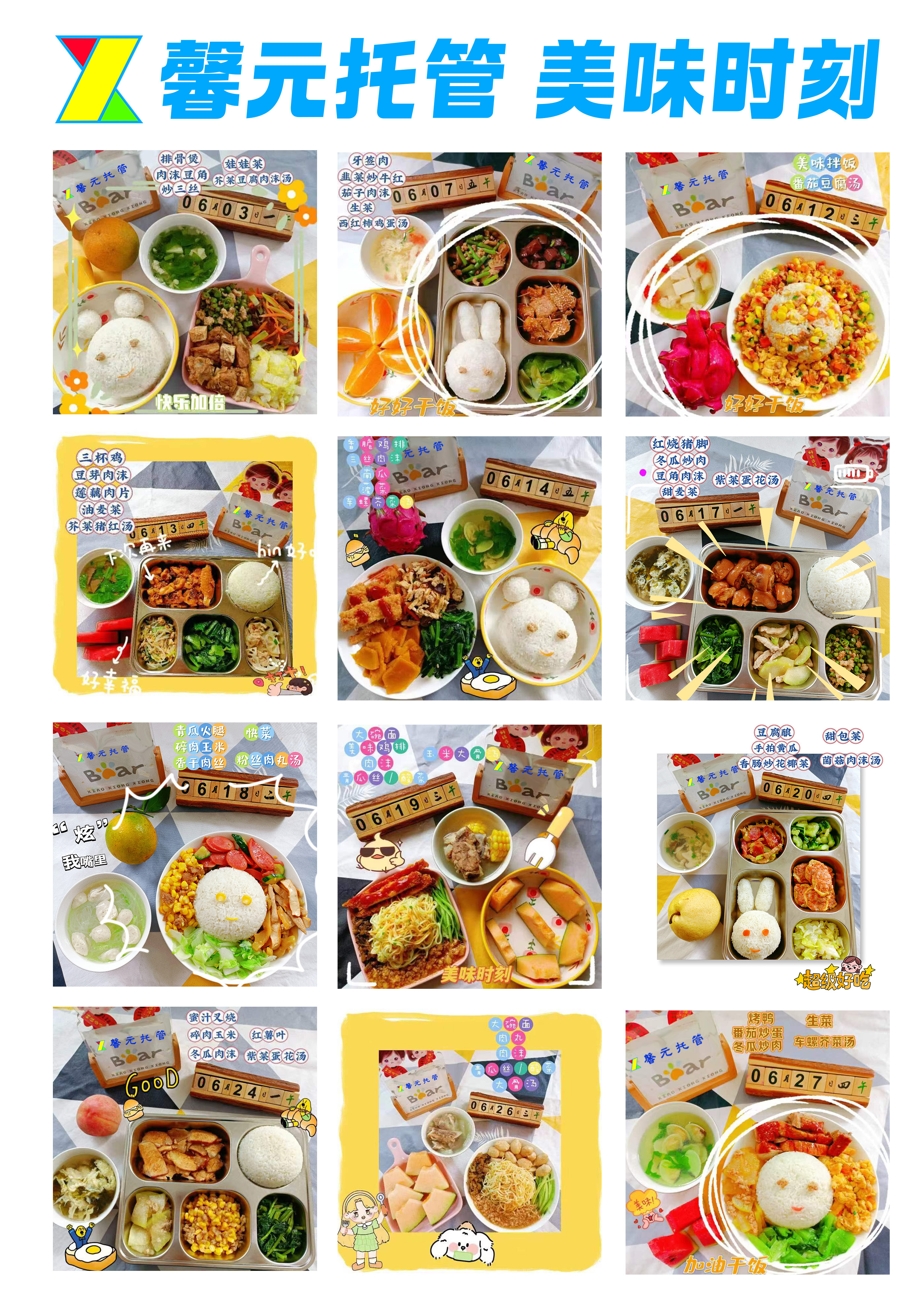 每餐 1个纯肉+2个肉炒菜+1个时蔬+1个汤+水果